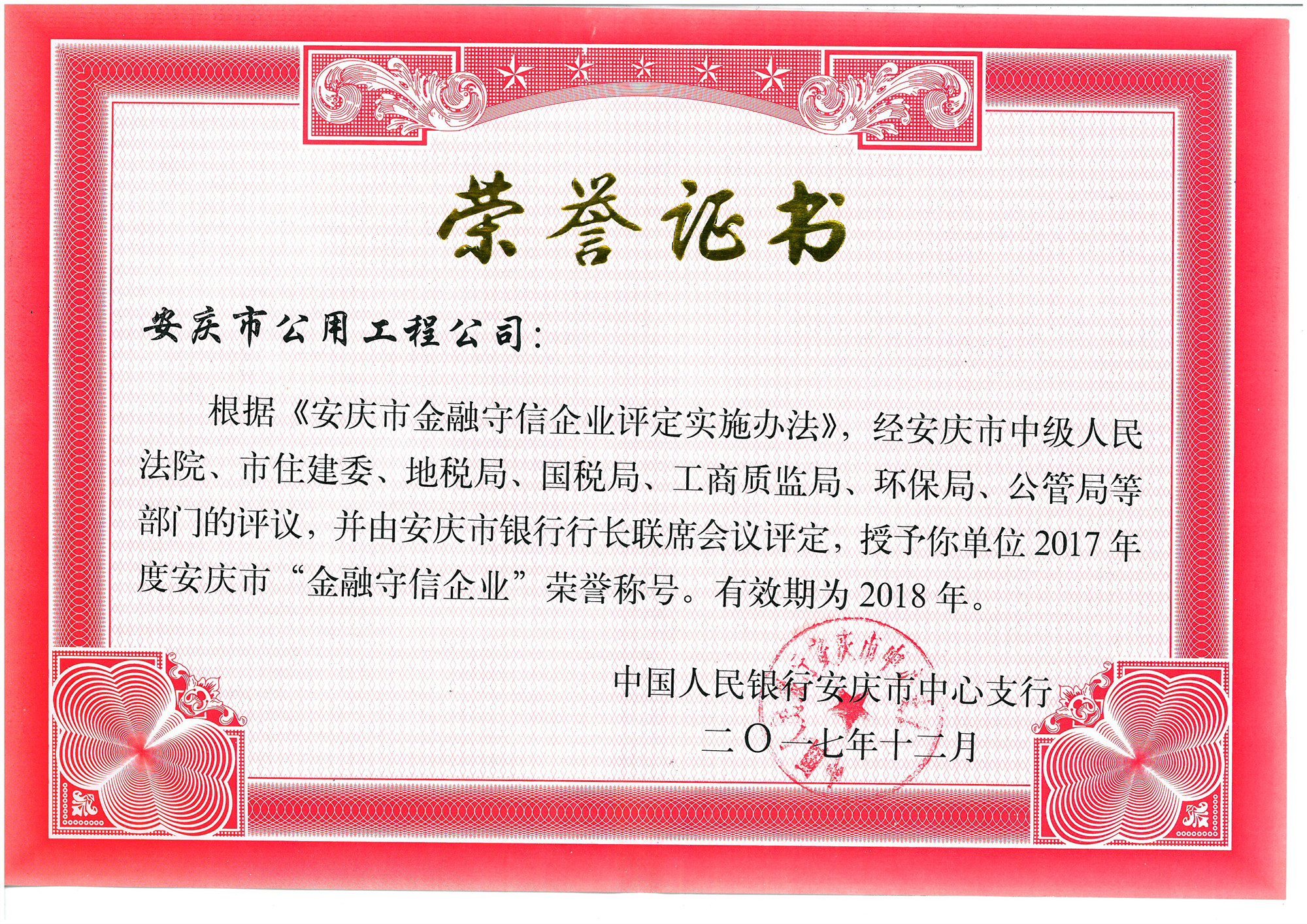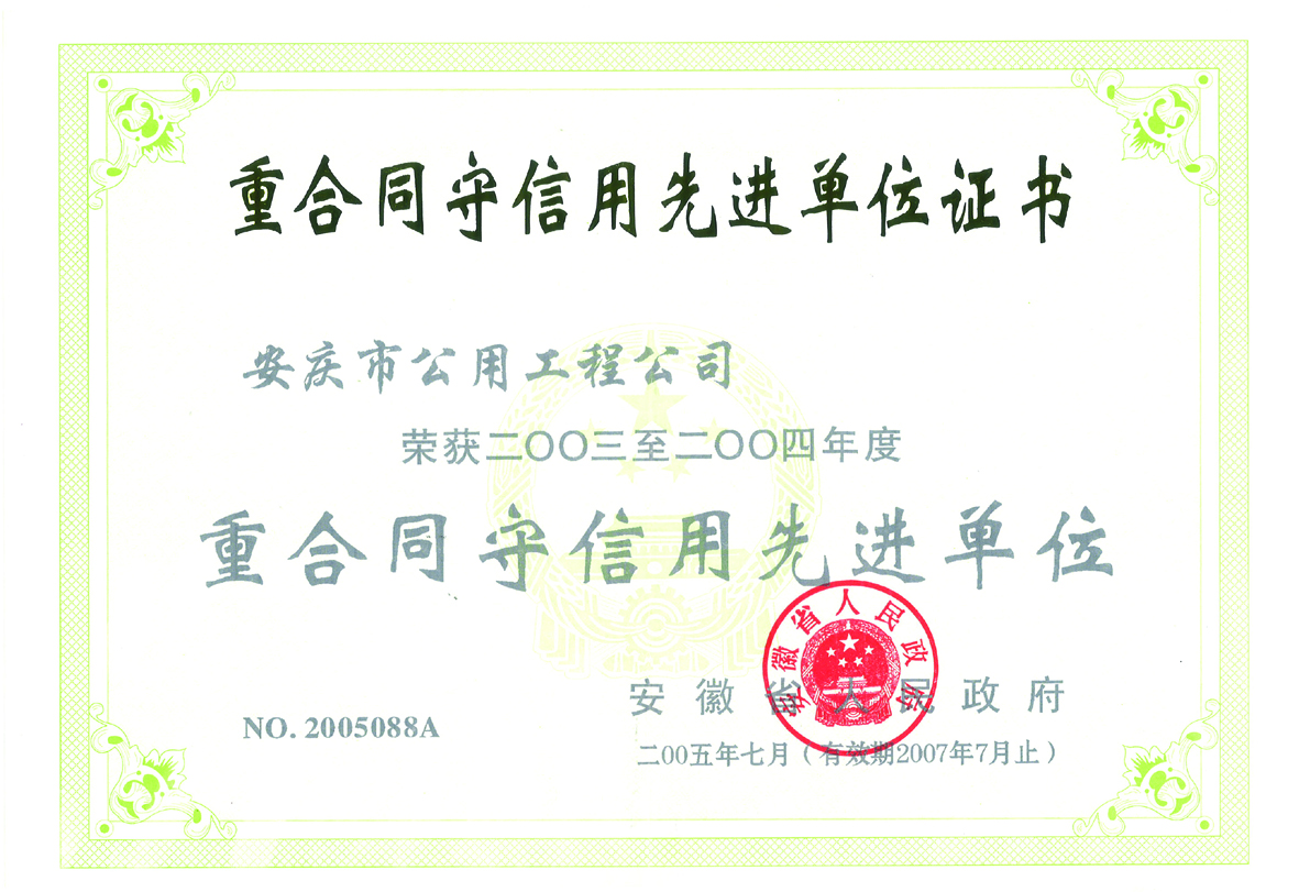 重合同守信用先進(jìn)單位證書(shū)
